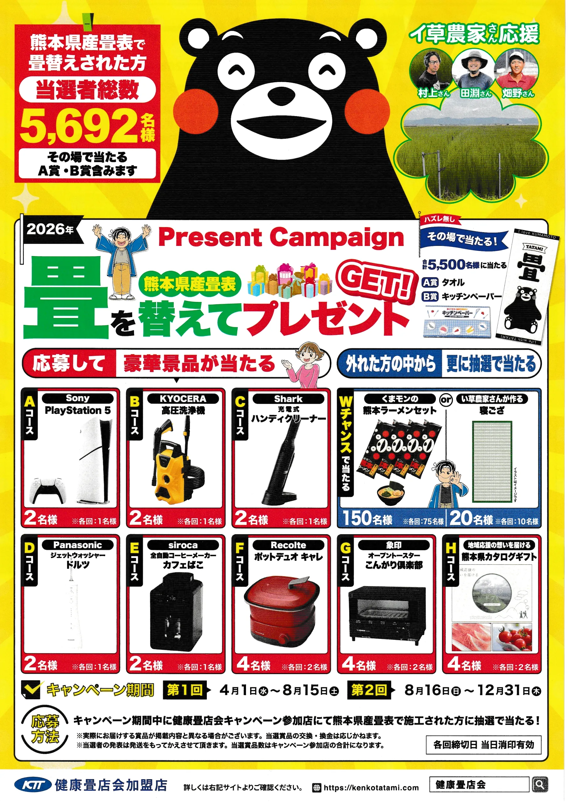 健康畳店会ならびに関係者は、本キャンペーンには応募できません。